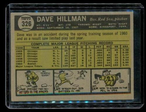 Vintage 1961 TOPPS Baseball Trading Card #326 DAVE HILLMAN Boston Red Sox