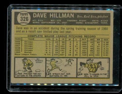 Vintage 1961 TOPPS Baseball Trading Card #326 DAVE HILLMAN Boston Red Sox