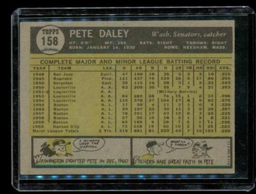 Vintage 1961 TOPPS Baseball Trading Card #158 PETE DALEY Washington Senators