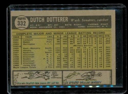 Vintage 1961 TOPPS Baseball Trading Card #332 DUTCH DOTTERER Washington Senators