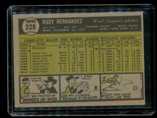 Vintage 1961 TOPPS ROOKIE Baseball Card #229 RUDY HERNANDEZ Washington Senators