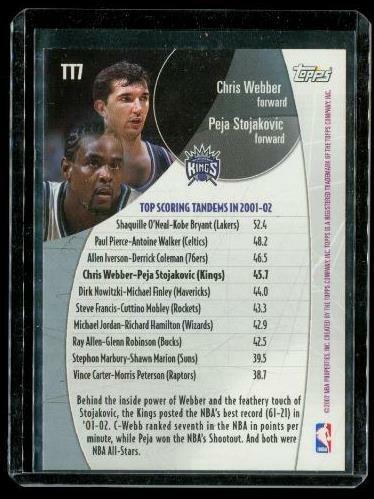 2001-02 TOPPS TOP TANDEMS Inser Rainbow Basketball Card TT7 CHRIS WEBBER - PEJA STOJAKOVIC Sacramento Kings