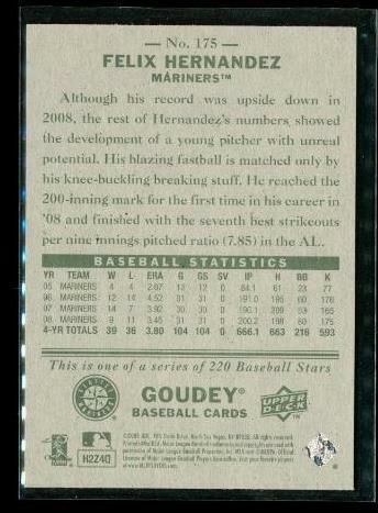 2009 UPPER DECK GOUDEY Baseball Trading Card #175 FELIX HERNANDEZ Mariners