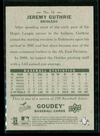 2009 UPPER DECK GOUDEY Baseball Trading Card #16 JEREMY GUTHRIE Orioles