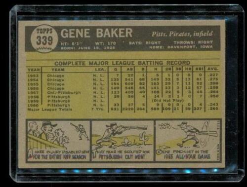 Vintage 1961 TOPPS Baseball Trading Card #339 GENE BAKER Pittsburgh Pirates