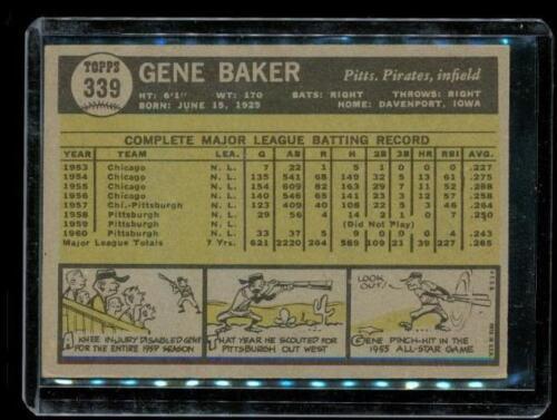 Vintage 1961 TOPPS Baseball Trading Card #339 GENE BAKER Pittsburgh Pirates