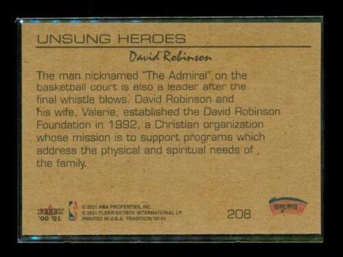 2001 FLEER TRADITION UNSUNG HEROES Basketball Card #208 DAVID ROBINSON San Antonio Spurs