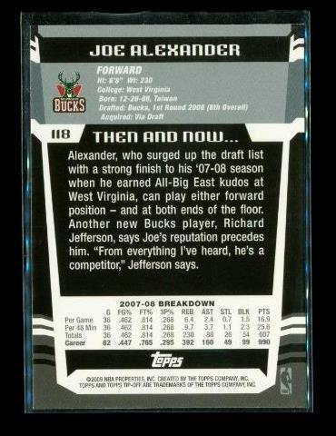 2009 TOPPS TIP OFF Rookie Basketball Trading Card #118 JOE ALEXANDER Milwaukee Bucks