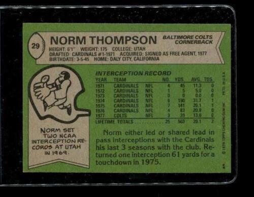 Vintage 1978 TOPPS TCG Football Trading Card #29 NORM THOMPSON Baltimore Colts