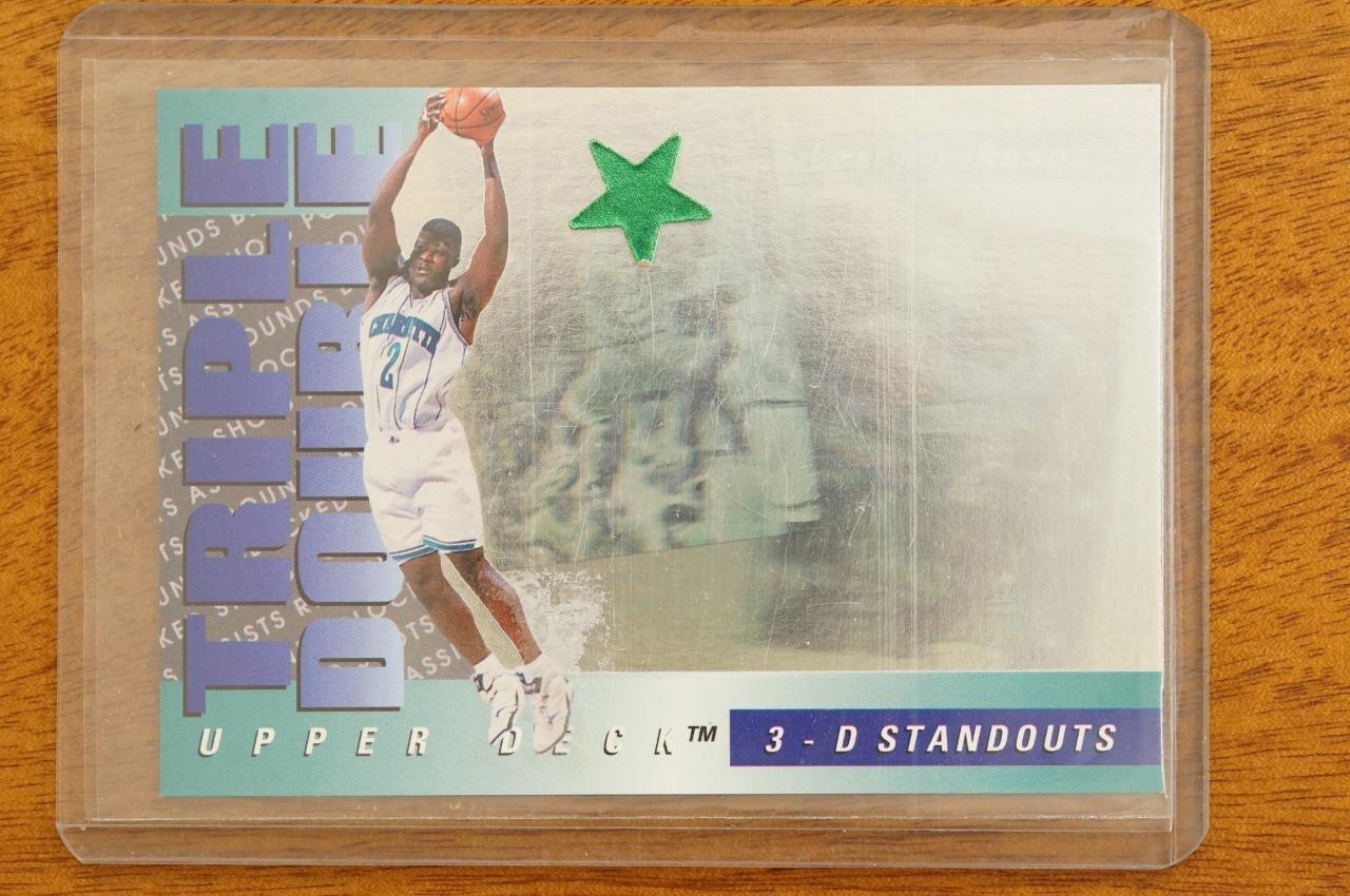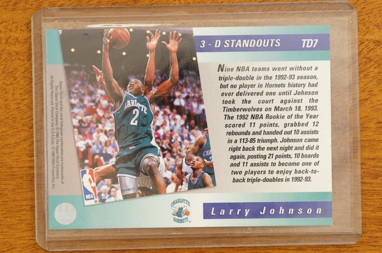 1993 Upper Deck Basketball Card Larry Johnson Charlotte Hornets TD7 3D Standouts - the foil star is on the sleeve, not the card.