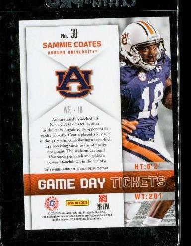 2015 PANINI CONTENDERS GAME DAY TICKETS Football Card #38 SAMMIE COATES Steelers