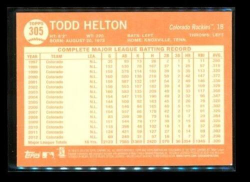 2013 TOPPS HERITAGE Baseball Trading Card #305 TODD HELTON Colorado Rockies