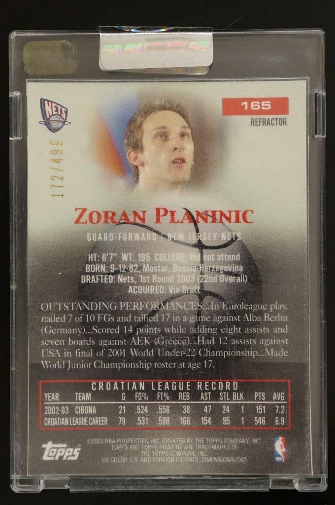 2003-04 Topps Pristine Refractor Basketball Card UNC 172/499 ZORAN PLANINIC Nets - uncirculated with holo seal on the case.
