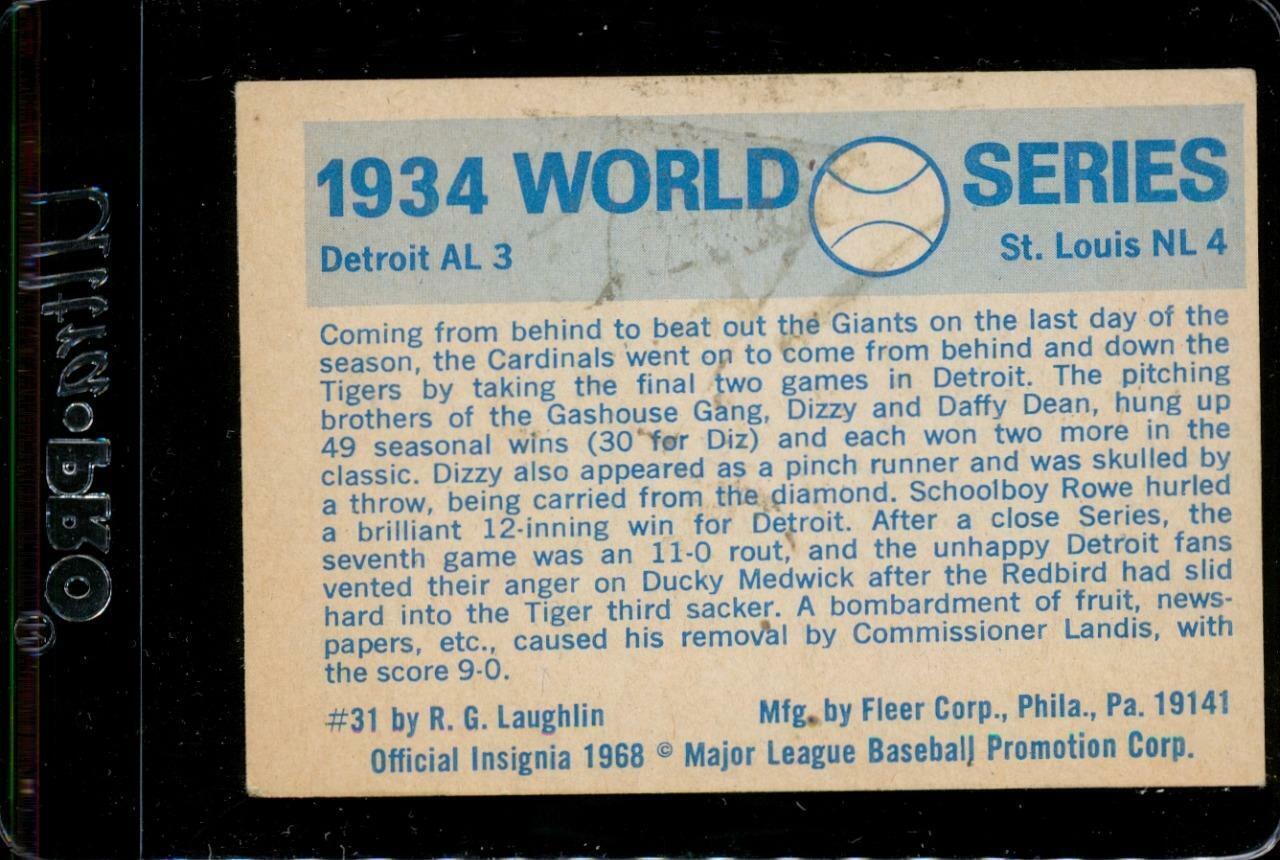 1970 Baseball Card Fleer Laughlin World Series #31 1934 Cardinals vs Tigers