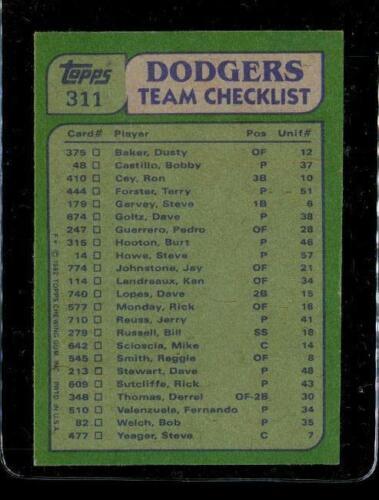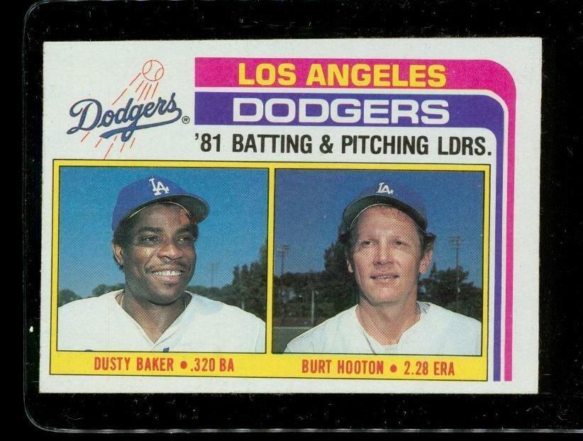 Vintage 1982 BASEBALL Trading Card TOPPS #311 LA Dodgers 1981 Batting and Pitching Leaders, Dusty Baker, Burt Hooton
