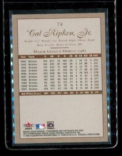2003 FLEER ROOKIES & GREATS Baseball Card #74 CAL RIPKEN JR Baltimore Orioles