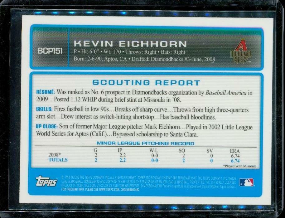 2009 Baseball Card Bowman Chrome Prospects BCP151 KEVIN EICHHORN Arizona Diamondbacks