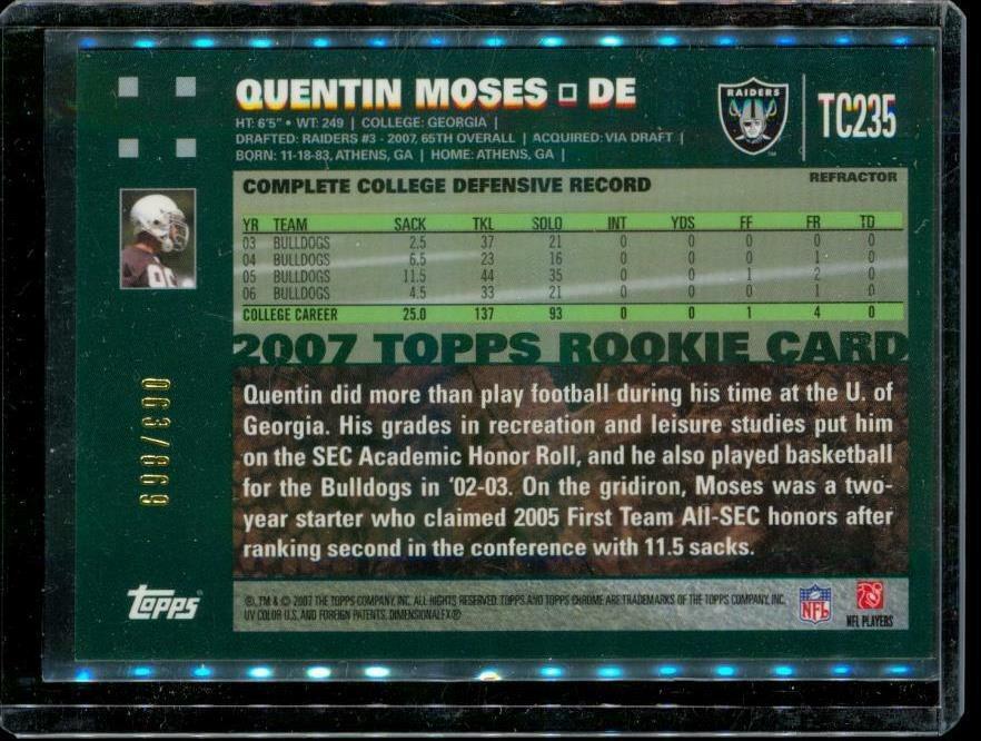 2007 TOPPS CHROME ROOKIE Refractor Football Card TC235 QUENTIN MOISES Oakland Raiders Limited Edition 063/869