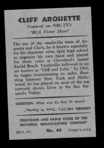Vintage Bowman TV & Radio NBC Trading Card 1953 CLIFF ARQUETTE #44 RCA Victor