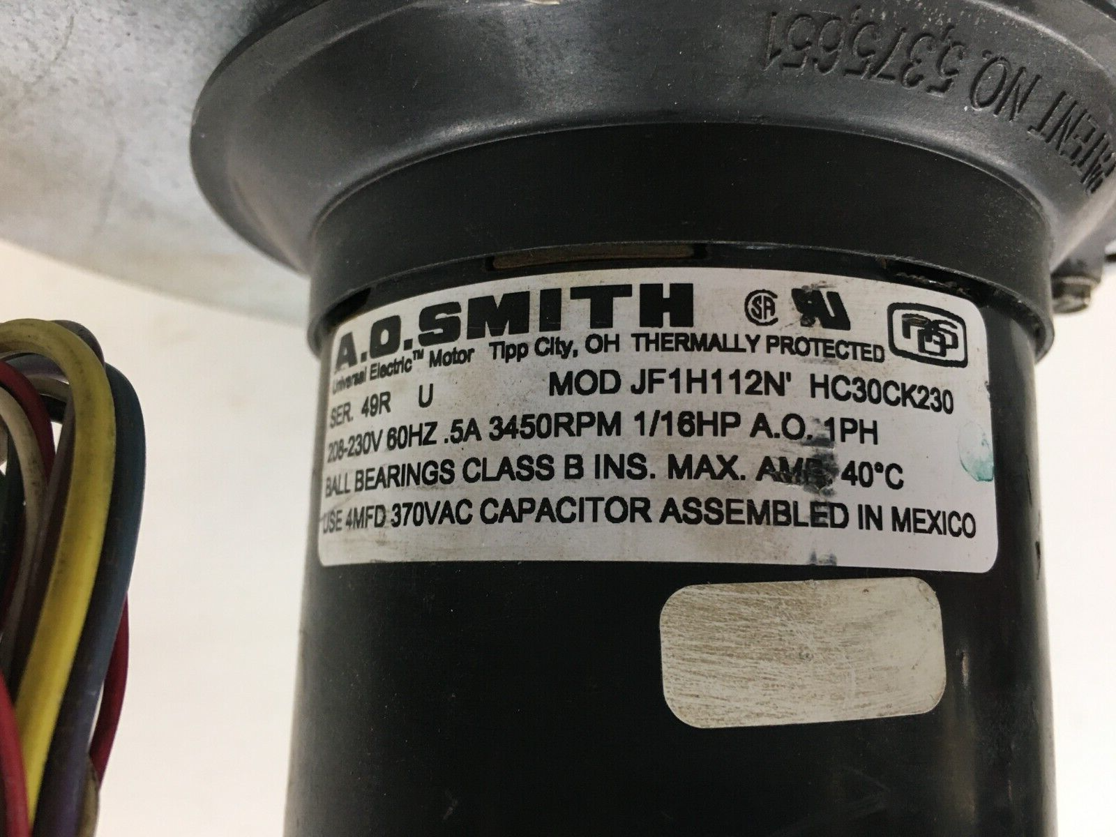 This is A.O.Smith Magnetek Motor Division JF1H112N Inducer Blower Motor Assembly HC30CK230 used part.
