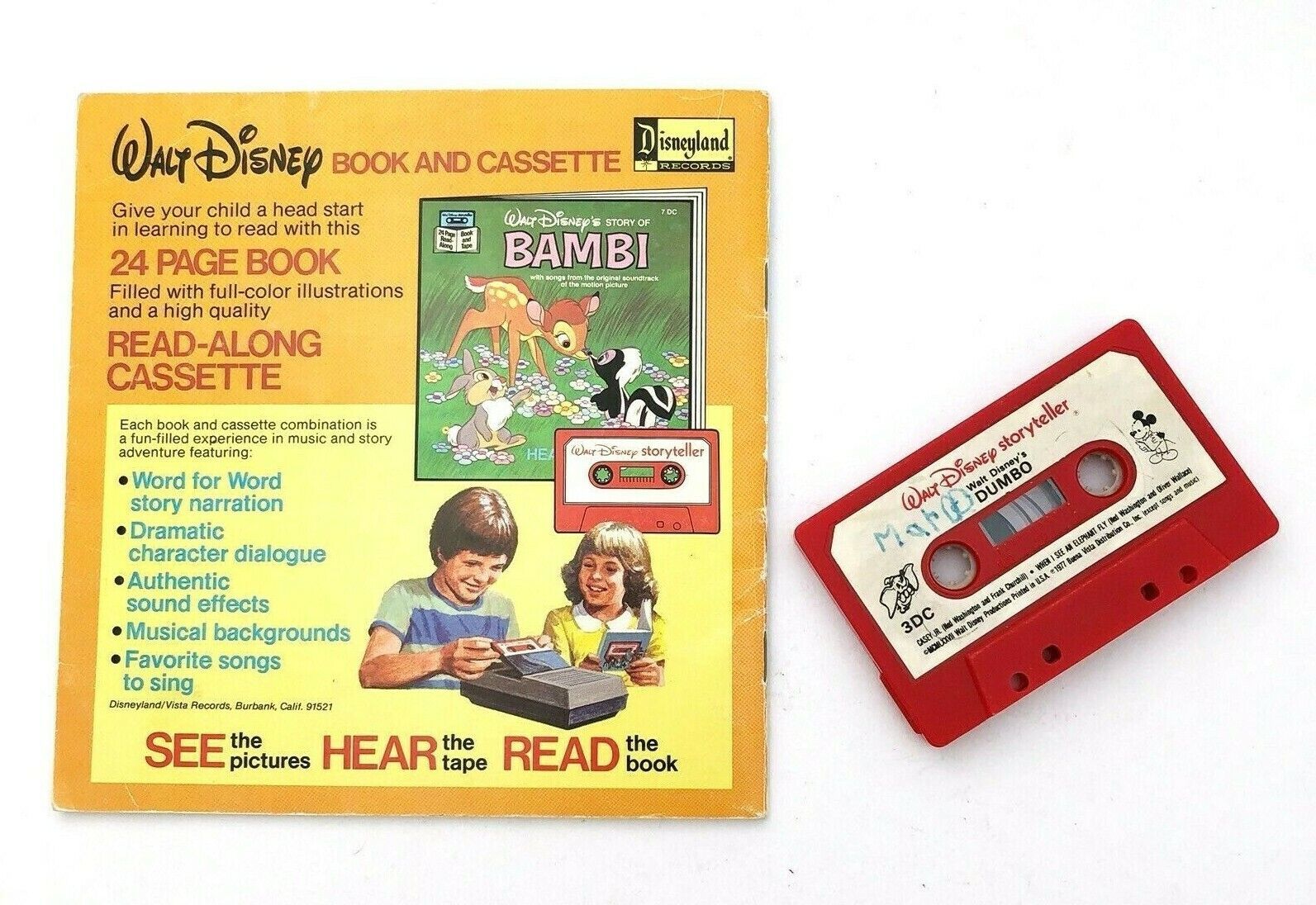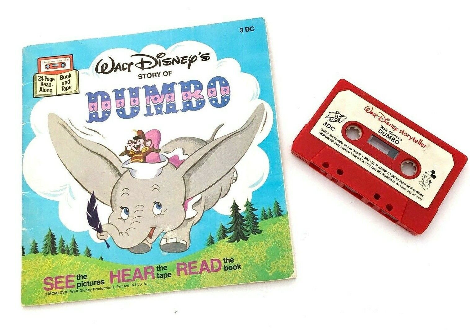 Vintage Disney's Dumbo Read Along Book and Cassette Tape - 24 Page