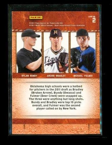 2011 DONRUSS ELITE EXTRA EDITION BUILDING BLOCKS Baseball Card #2 DYLAN BUNDY Baltimore Orioles, ARCHIE BRADLEY Arizona Diamondbacks, MICHAEL FULMER New York Mets