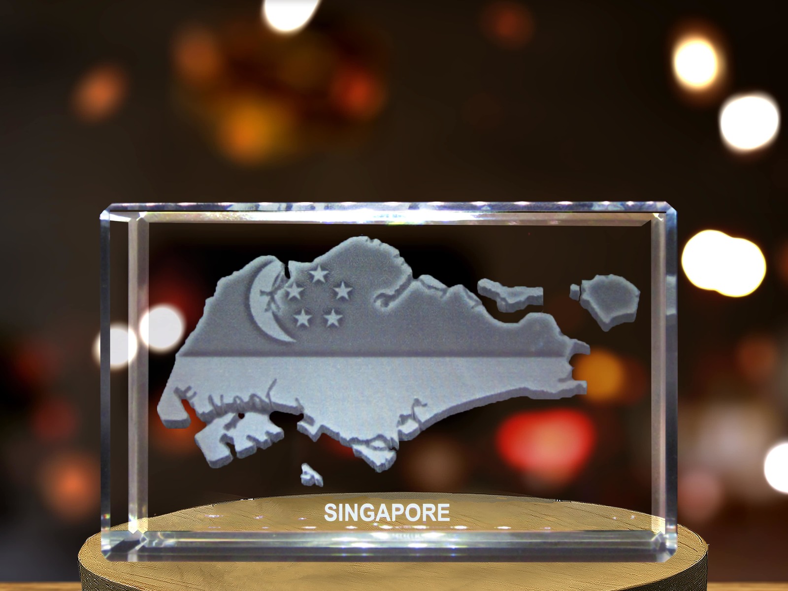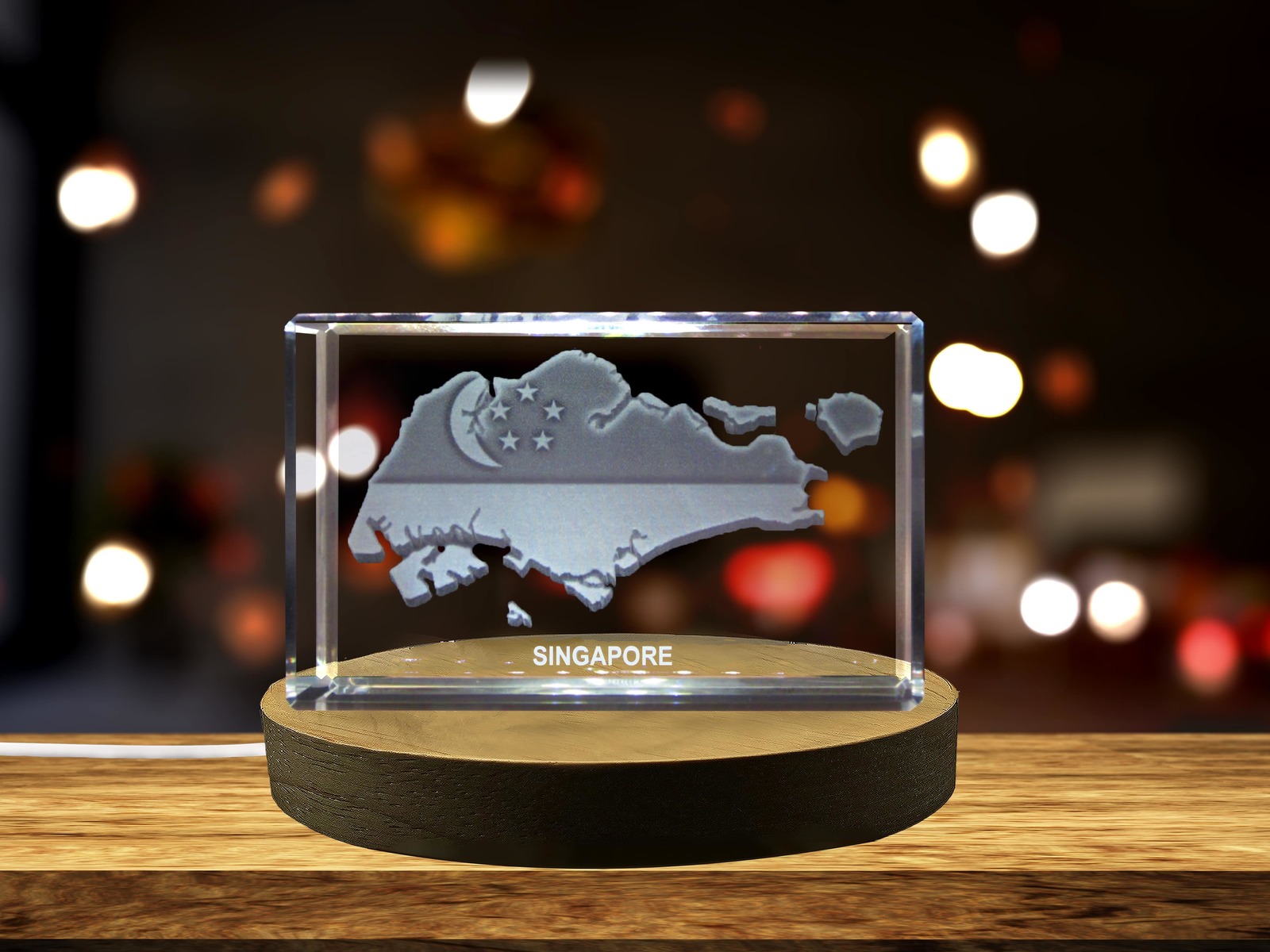 LED Base included | Singapore 3D Engraved Crystal 3D Engraved Crystal Keepsake