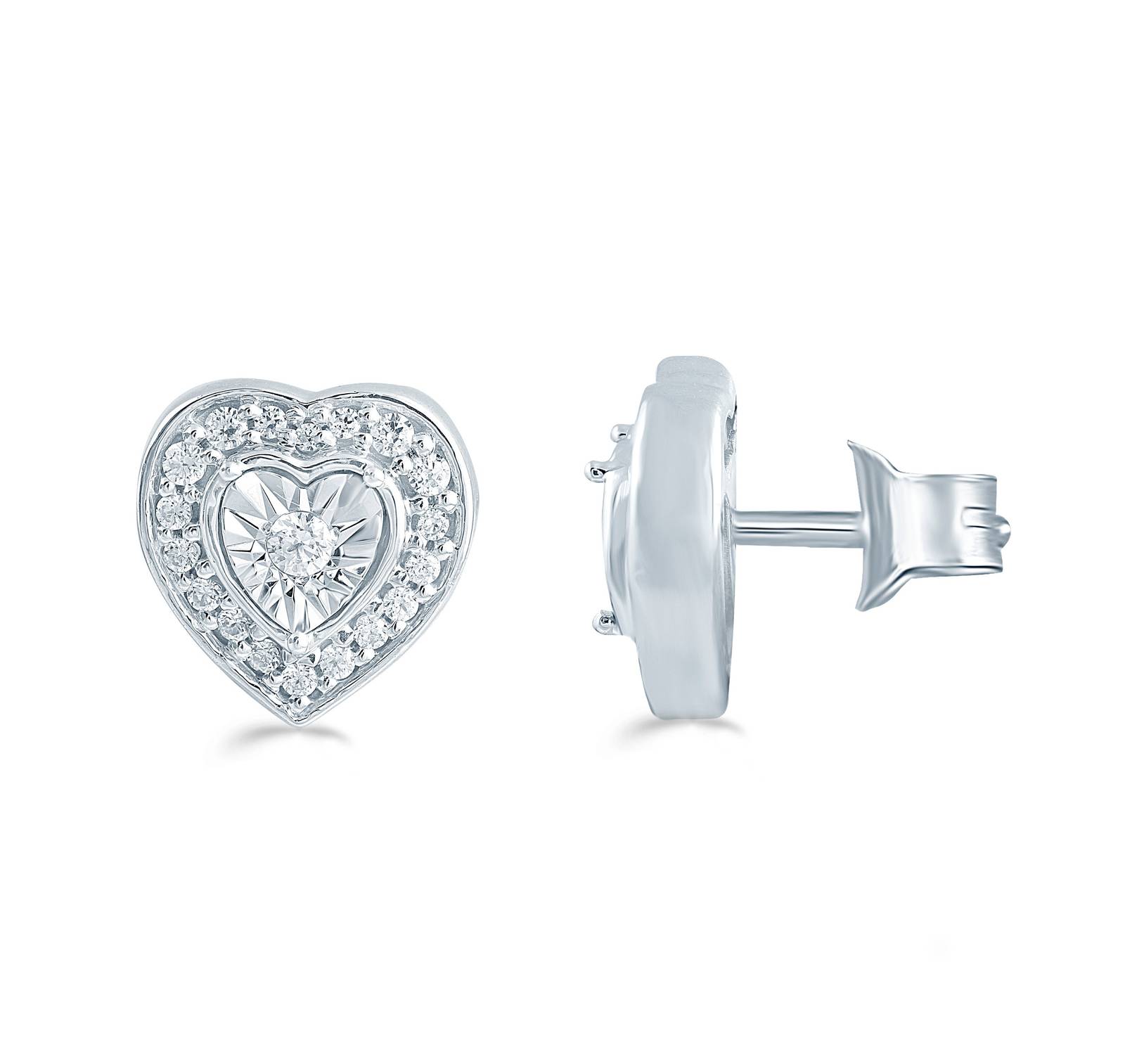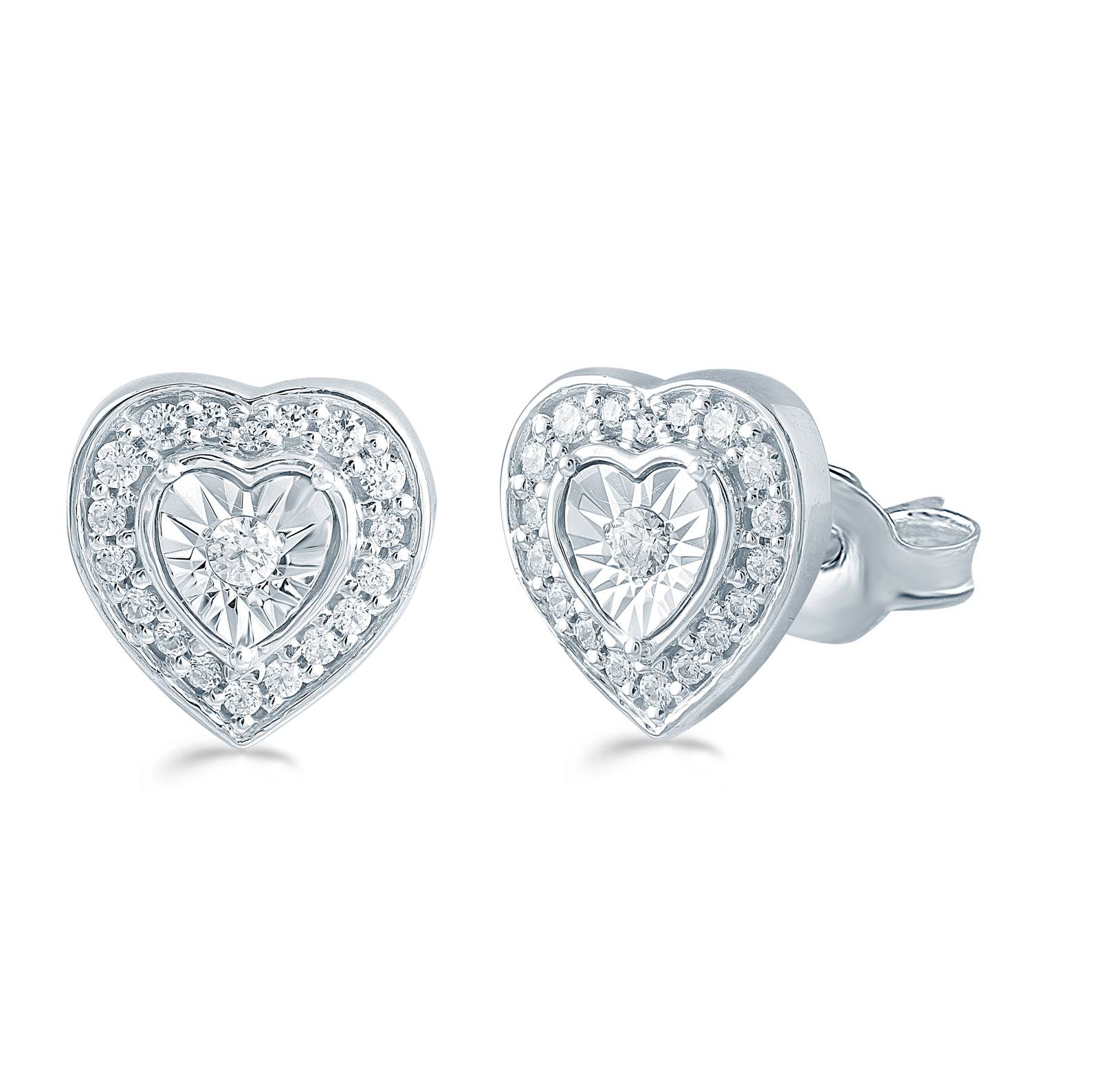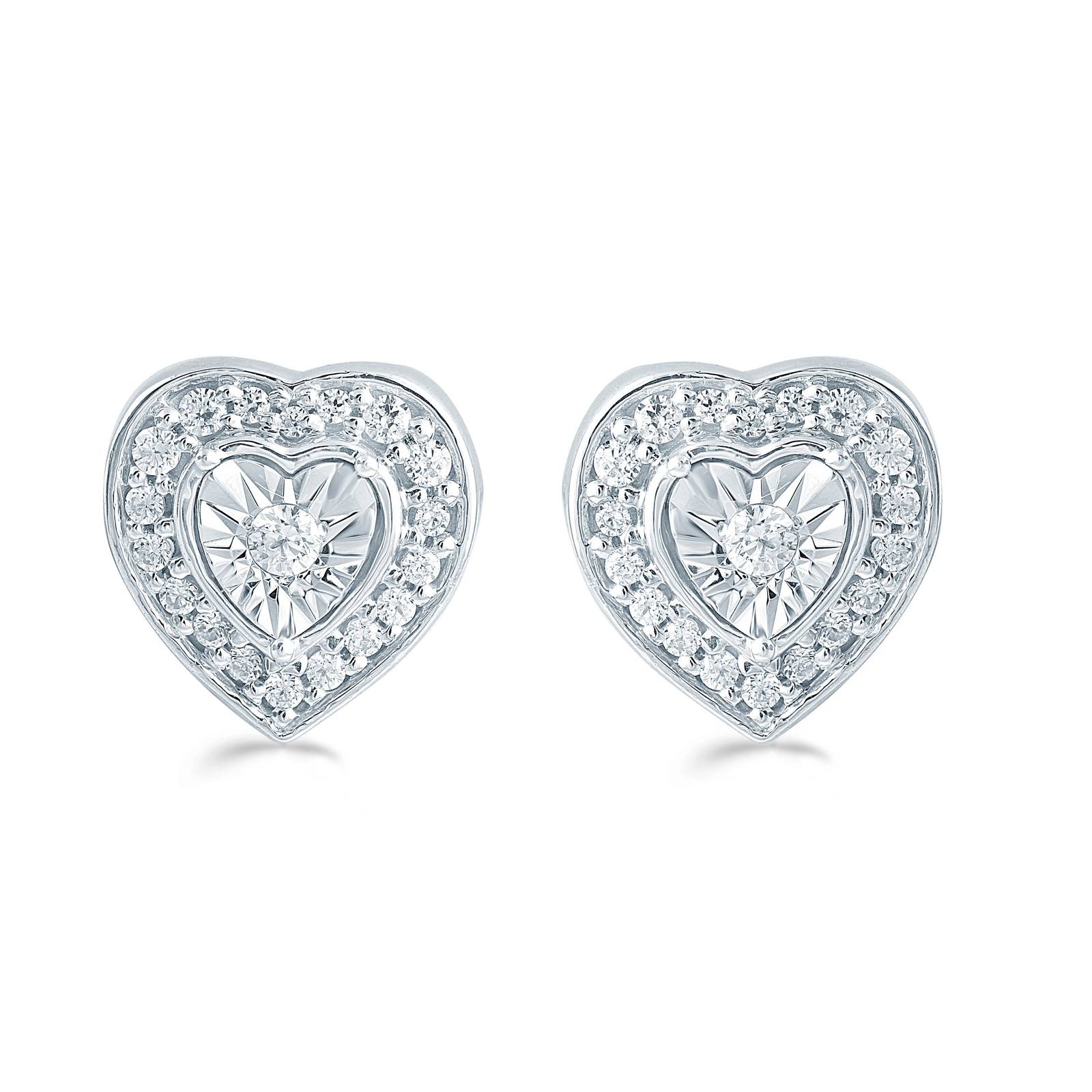 Sterling Silver Heart Shape Earrings. Brilliantly Set with a Solitaire and Surrounding Halo of 1/4CT.TW. of Diamonds