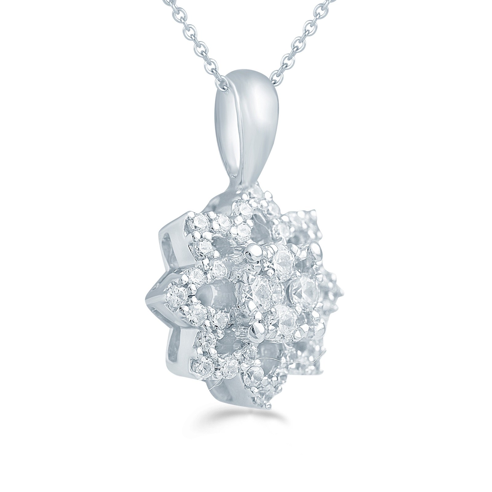 1/4ct tw Diamond Floral Cluster Fashion Pendant in Sterling Silver with 18" cabl