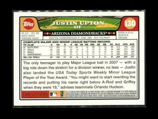 2008 TOPPS 52 YEARS Glitter Baseball Card #130 JUSTIN UPTON Diamondbacks LE