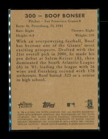 2001 TOPPS BOWMAN HERITAGE ROOKIE Baseball Trading Card #300 BOOF BONSER San Francisco Giants