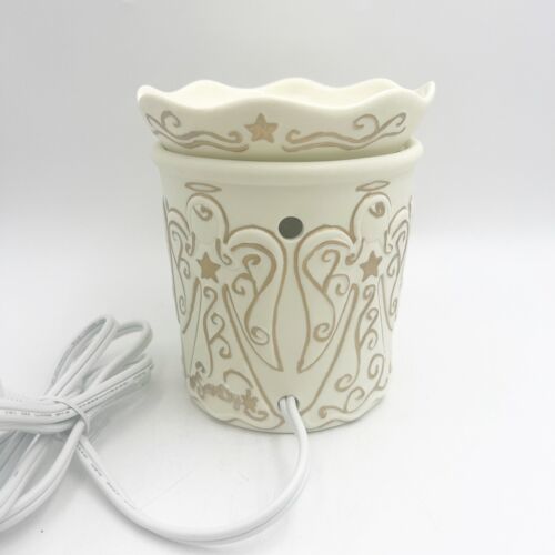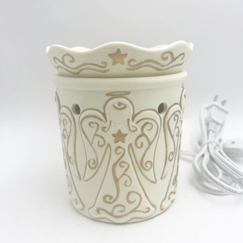 Scentsy Heavenly Angel Ivory Gold Wax Warmer Retired Holiday Tested Works. Looks lightly used. No visible chips or cracks. Some wax residue on tray.