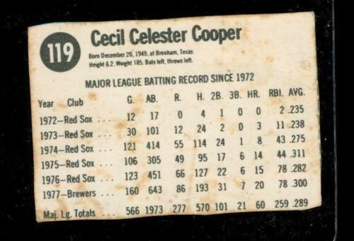 Vintage 1978 Baseball Card HOSTESS #119 CECIL COOPER Milwaukee Brewers Hand Cut