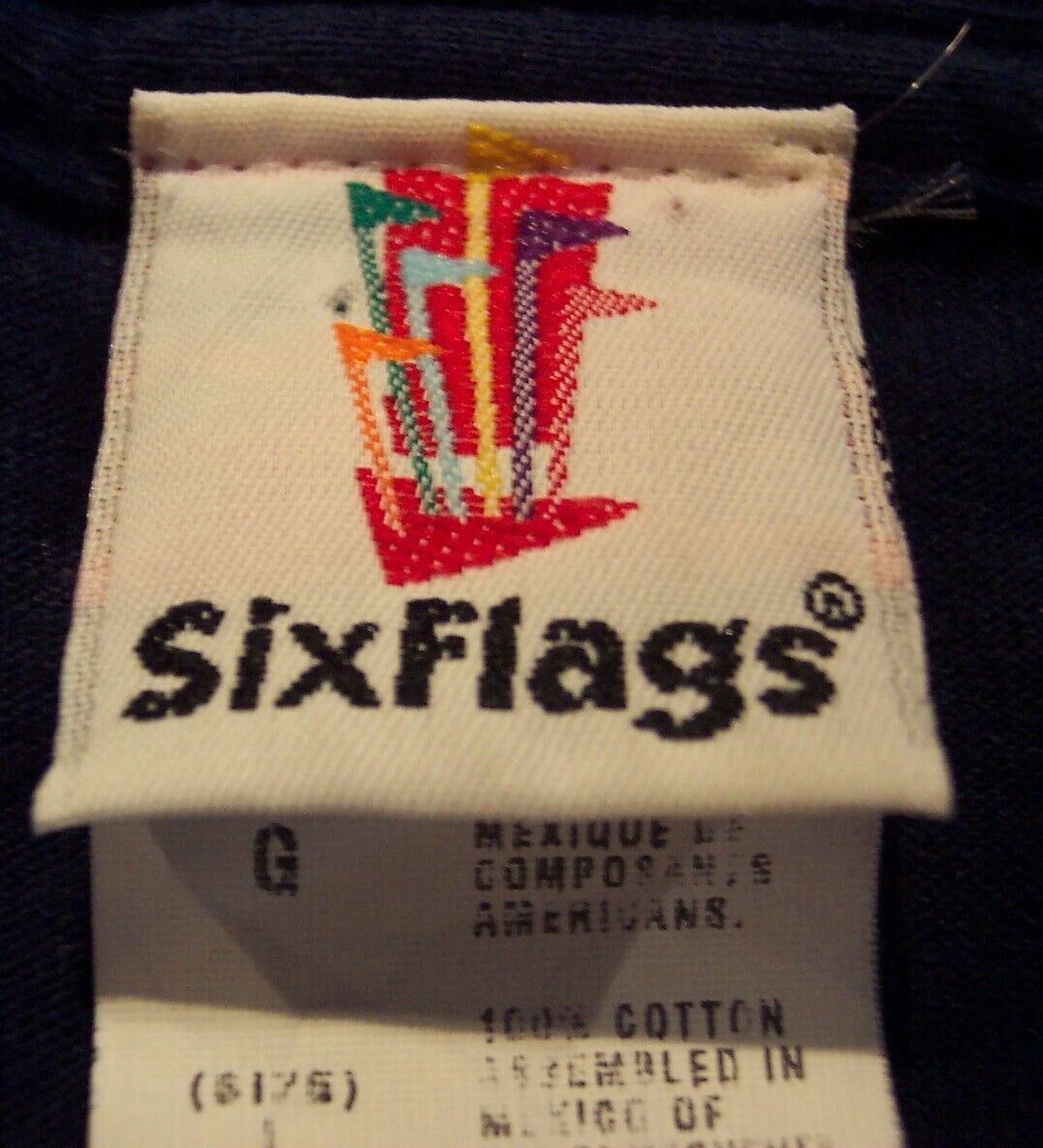 VINTAGE OFFICIAL SIX FLAGS Amusement Park DON'T SPEW T-shirt MENS LARGE