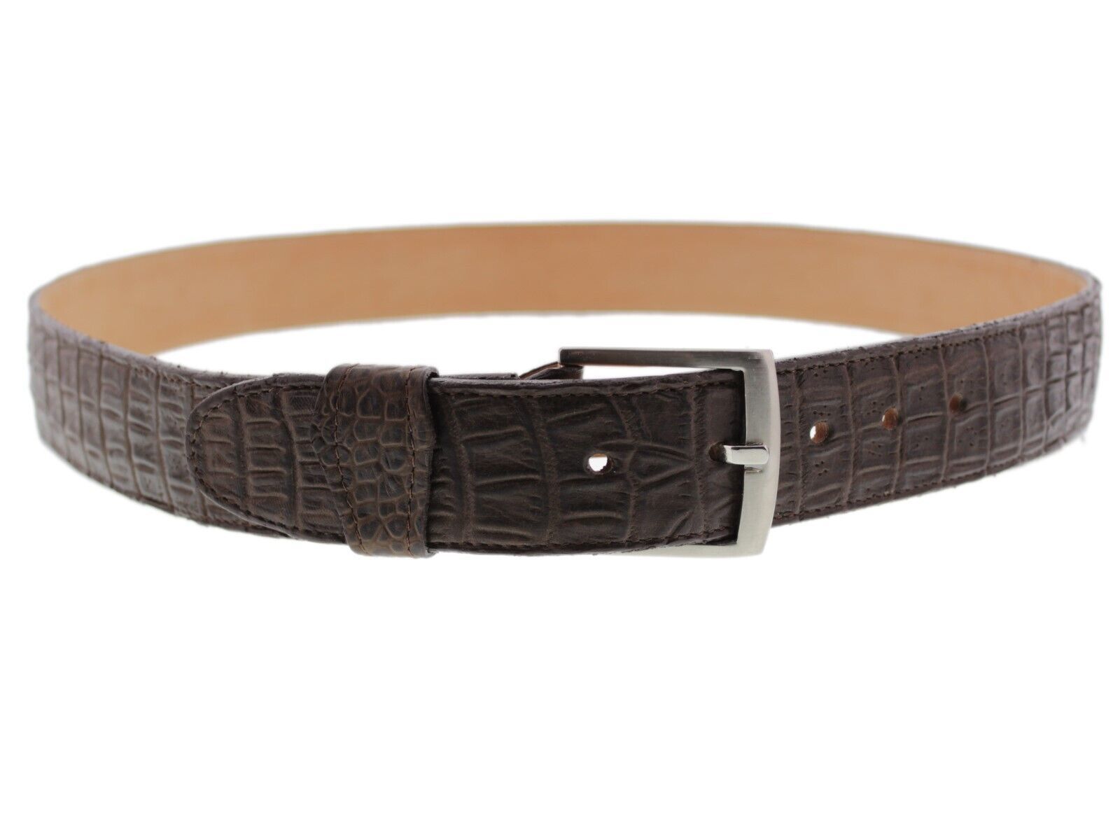 Brown Leather Cowboy Belt Crocodile Belly Print Silver Buckle Cinto Rancho