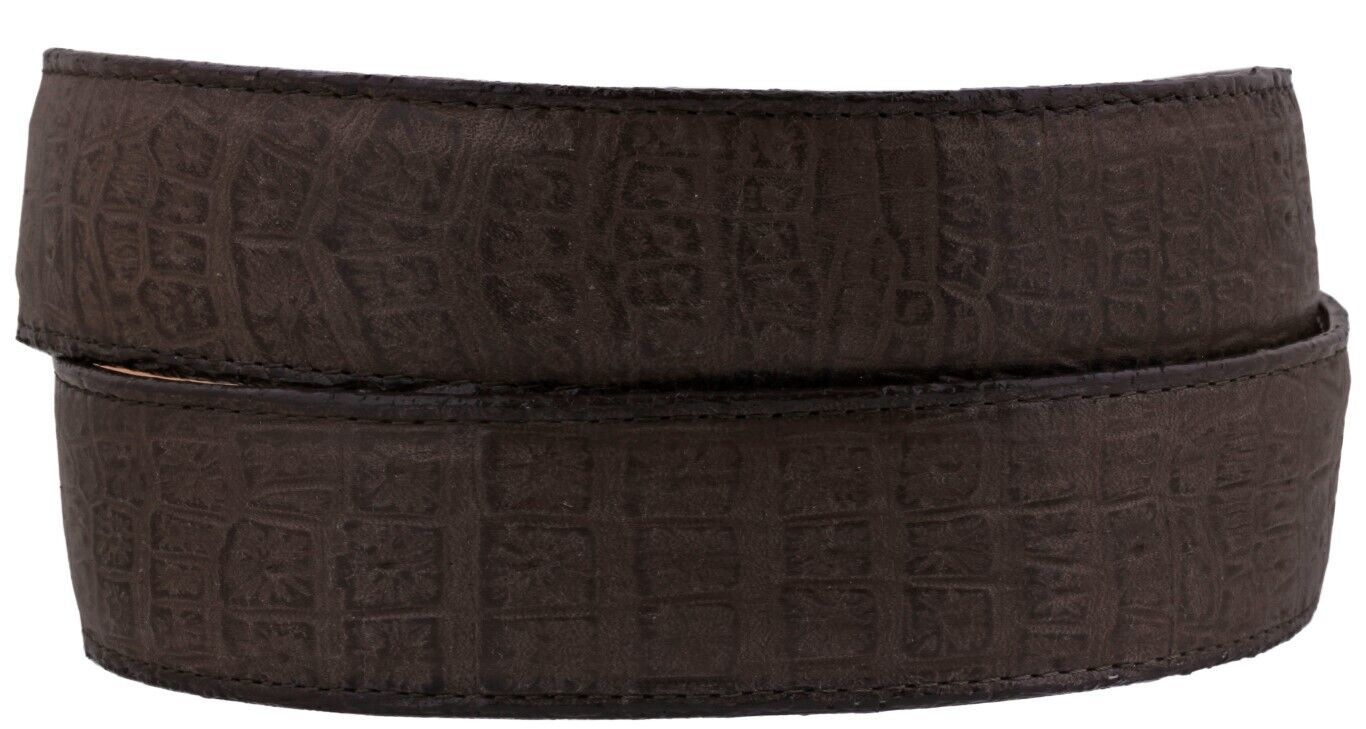 Mens Brown Crocodile Belly Pattern Real Leather Belt Cowboy Western Rodeo Buckle