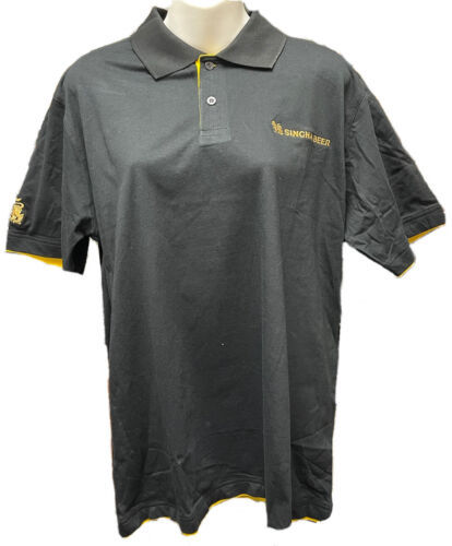 Singha Beer Men's Large Black Yellow Lion Theme Straight Hem Polo Shirt size L