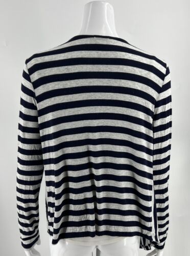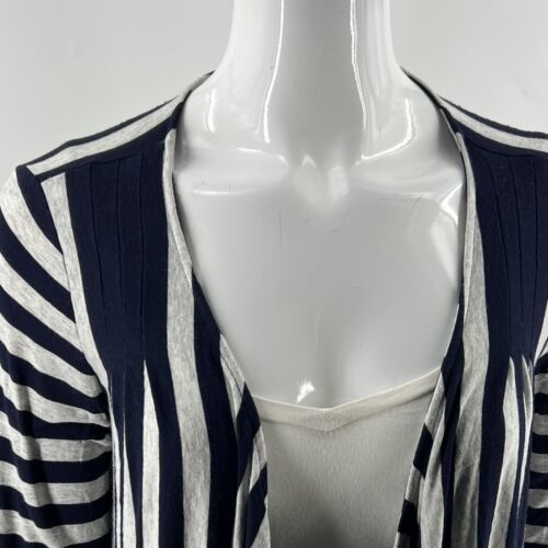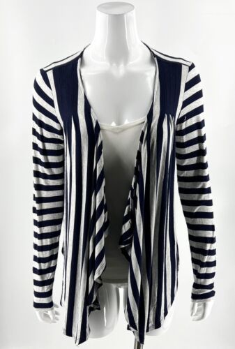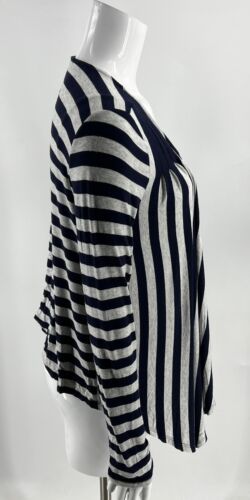 Ella Moss Open Front Top Size M Navy Blue Gray Striped Draped Long Sleeve Womens