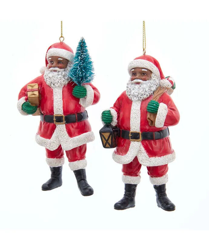 KURT ADLER SET OF 2 AFRICAN AMERICAN SANTA CLAUS CHRISTMAS ORNAMENTS E0509