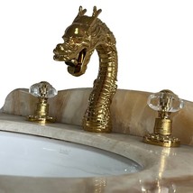 GOLD Color SOLID BRASS Deck-Mounted dragon lavatory sink Faucet WITH crystal handles