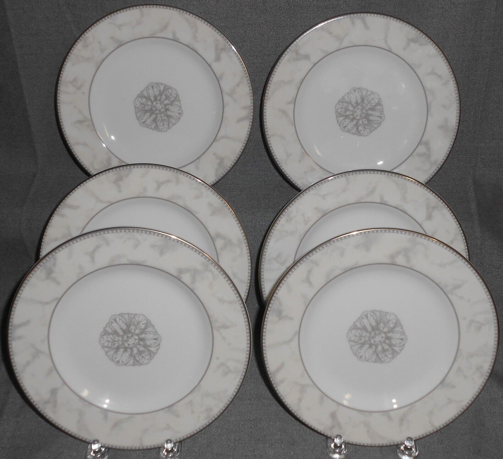 Set (6) Royal Doulton NAPLES PLATINUM PATTERN Dessert or B&B Plates ENGLAND