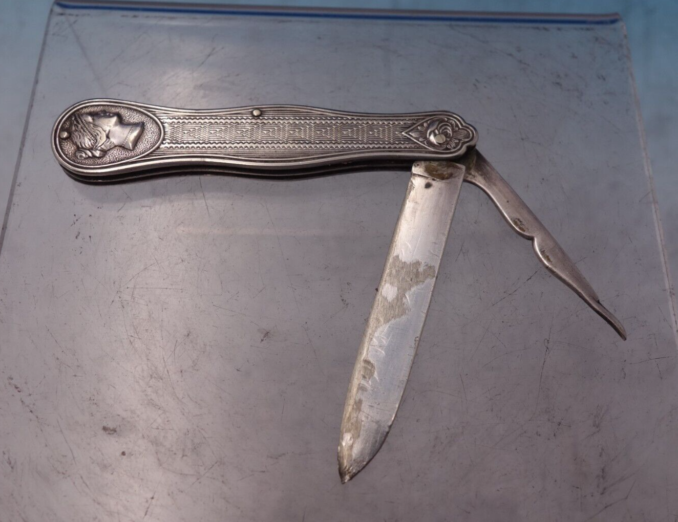 Medallion by Unknown Sterling Silver Pocket Knife w/Nut Pick Fruit Knife (#7237)
