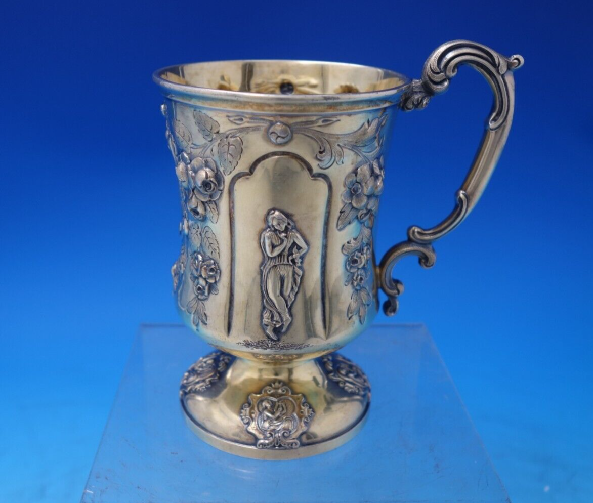 1 - Cup (marked #744 with engraving for 1875): Measures 4 1/2" tall x 4 1/4"