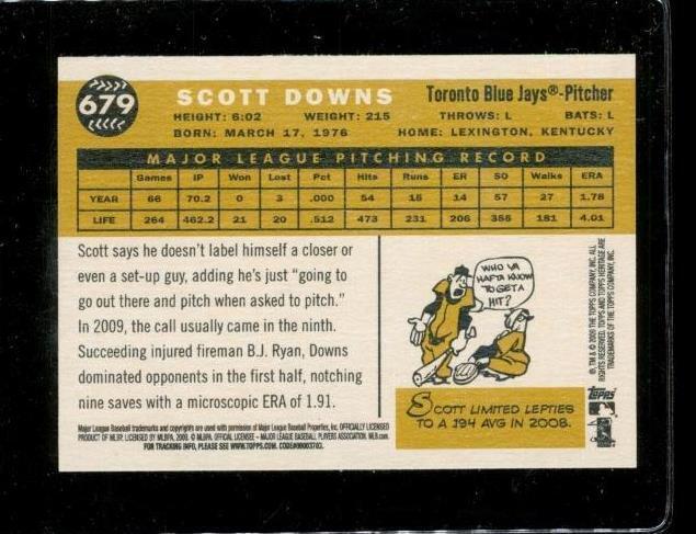 2009 TOPPS HERITAGE Baseball Trading Card #679 SCOTT DOWNS Toronto Blue Jays