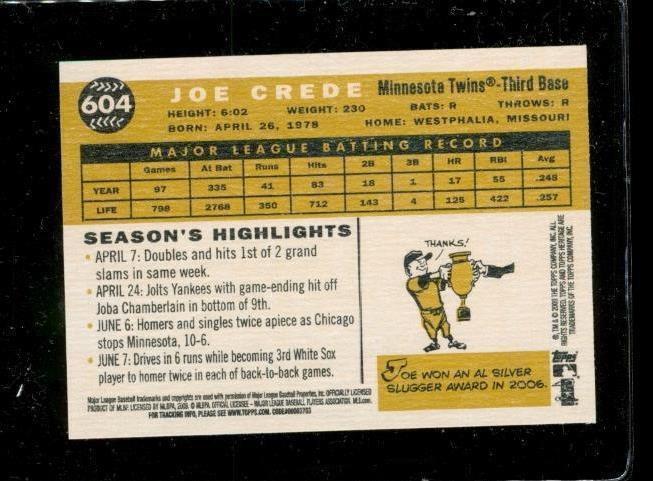 2009 TOPPS HERITAGE Baseball Trading Card #604 JOE CREDE Minnesota Twins