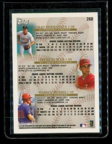 Vintage 1997 TOPPS PROSPECTS Baseball Trading Card #260 CHAD HERMANSEN Pittsburgh Pirates, BRENT BUTLER St. Louis Cardinals, WARREN MORRIS Texas Rangers