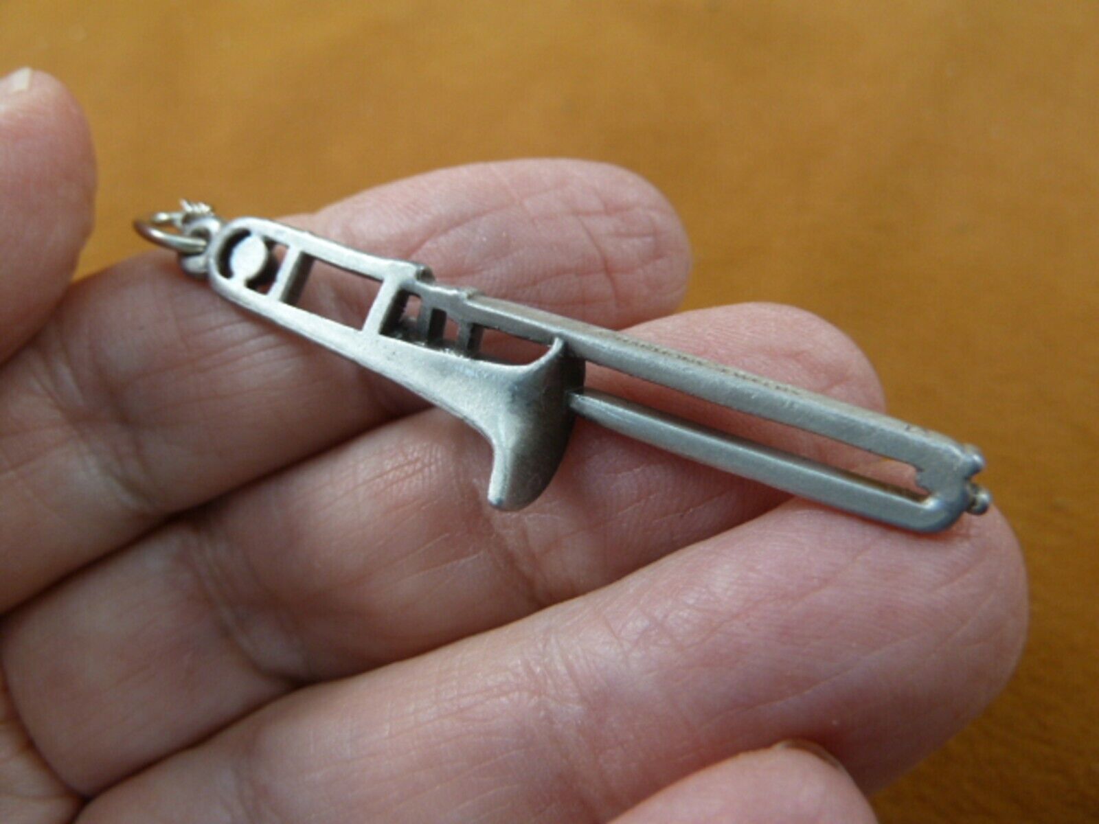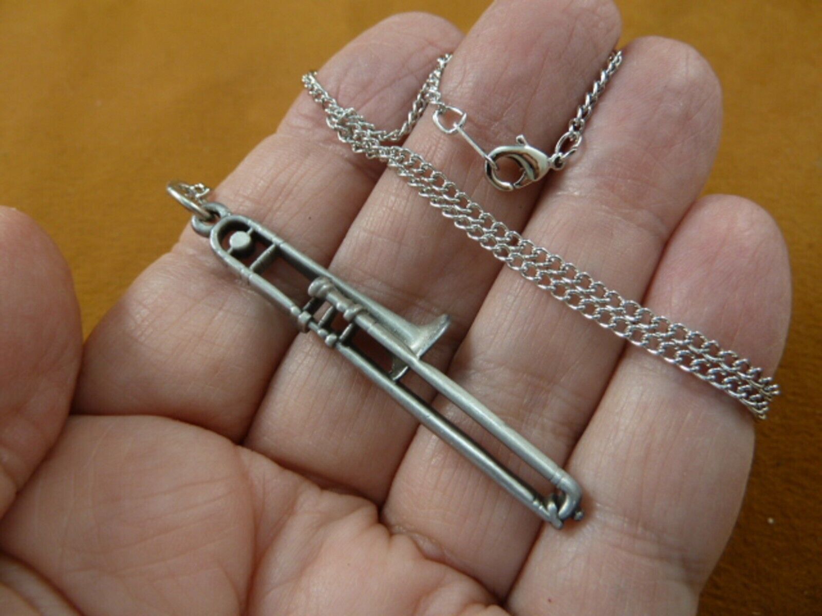 (M-210-D) TROMBONE JEWELRY pewter on 18" necklace Bach slide wind instrument