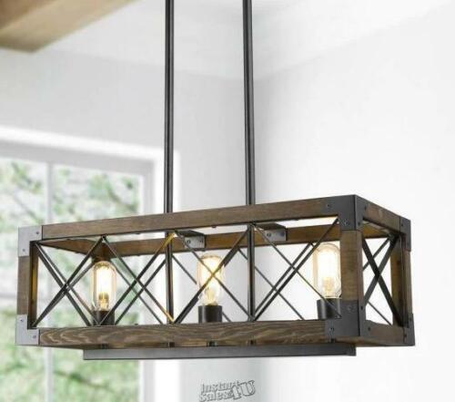 This rectangular island chandelier combines both farmhouse and transitional flair to any room! Induce a rich rustic look to your home with the Eliora 3-Light Rustic Farmhouse Black Chandelier Rectangular Wood Linear Cage Kitchen Island Chandelier by LNC! Featuring cozy, wooden cage-style silhouette. Crafted of genuine wood, the solid wood frame is washed in a dark brown for a casual, cottage feel. The painted black accents on the metal hanging rods (adjustable), joints, and hardware adding a little industrial flair on the design, providing contrast to the tone of the natural wood. The rectangular open-caged frame protects the bulbs (sold separately) while not affecting the illumination; and exposed bulbs are also low maintenance, easy to be clean, and replaced. This rustic farmhouse wood chandelier (chandelier or pendant) will perfectly complement a wide range of decor from urban rustic room to eclectic loft spaces. Farmhouse Island Chandelier: Modern farmhouse chandelier hanging pendant for your dining room, kitchen, and living room. Classic Farmhouse chandelier: A blend of modern metal cage and rustic farmhouse wood frame Adjustable Hanging Height: Various length options - hanging rod adjusts from 13 in. to 63 i; Sloped ceiling adaptable Durability: Real/solid wood construction with metal connection is built to last Compatible with LED or incandescent, Eco-Friendly: Uses 3 x 60-Watt max, E26 base bulbs (sold separately); Feit Electric bulbs (model # BP60T14/RP) are highly recommended for complete the vintage look (not included) Dimmable Lighting Fixture: You can match with a standard dimmer switch(not included) to get perfect light level instead of harsh glow Ideal Linear Size for Dining Areas - Light fixture: 23.5"W x 10"D x 10"H, canopy: 10 in. W x 1 in. H Quickly Easy Installation: Includes all accessory and instructions for easy installation and assembly The modern industrial island black chandelier looks perfect in kitchen island, bedroom, dining room, living room, foyer, hall, stairway, entryway, hallway, walk-in closet, etc Credibility: Preferred brand choice of builders and electricians UL Listed for proven safety and quality, uses in dry locations