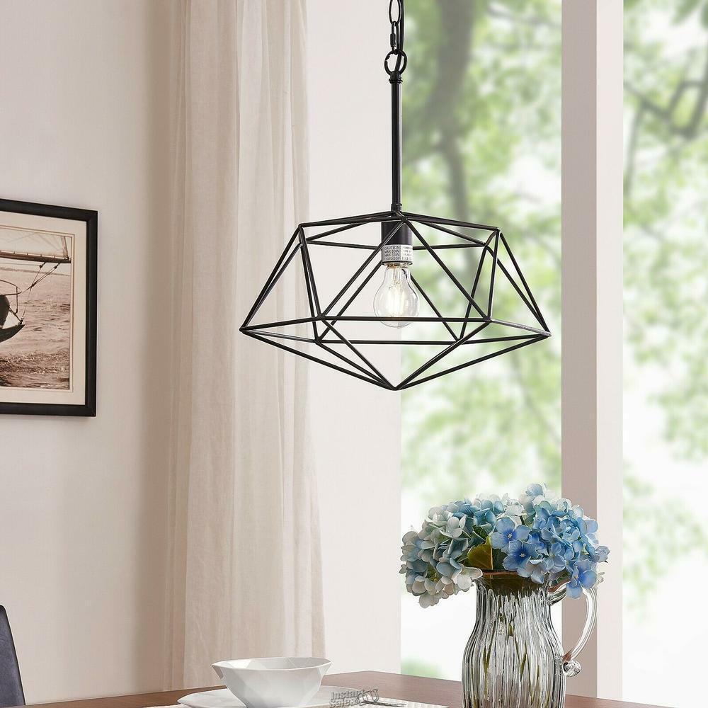 Southern Enterprises Sketra 1-Light Black Geometric Pendant Lamp
