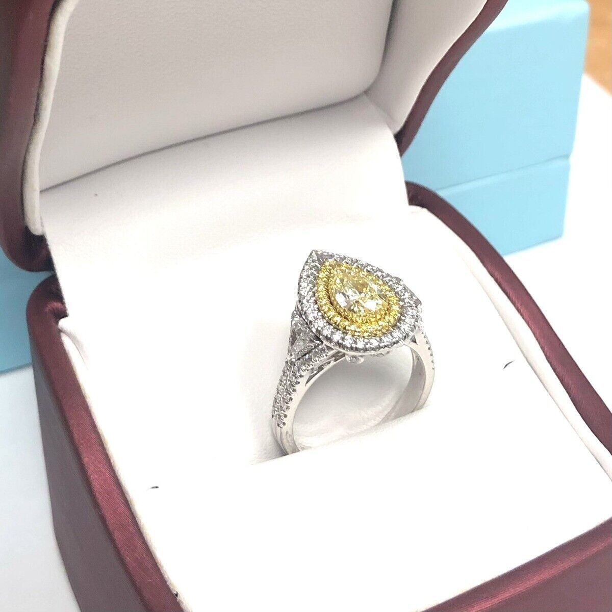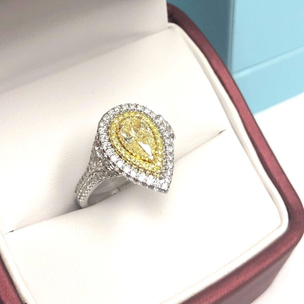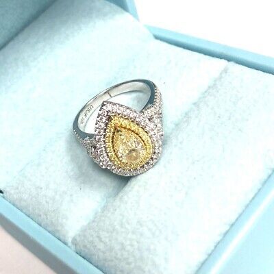 GIA 1.72 CT Pear Light Yellow Diamond Engagement Ring 18k White Gold